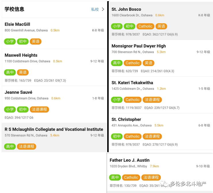 本物业所属的公立小学Elsie MacGill、高中Maxwell Heights、法语小学Jeanne Sauve和教会小学St.John Bosco学校都是几百米的距离,步行可达,非常方便有小孩的家庭。具体的学校信息和排名情况,可从下面的这个图中详细了解。