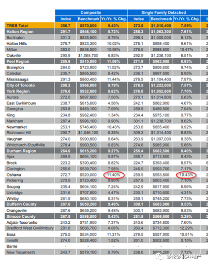 物业的价值和资产保值增值方面,有图有真相。从多伦多地产局今年5月和6月的数据来看,同比去年,Oshawa在5月份总体房屋的价格同比增幅为11.4%,独立屋的价格同比增幅为10.43%,领跑大多地区的各个城市。Oshawa在6月份总体房屋的价格同比增幅为8.54%,独立屋的价格同比增幅为7.38%,依然在大多地区的各个城市中保持在前列。
