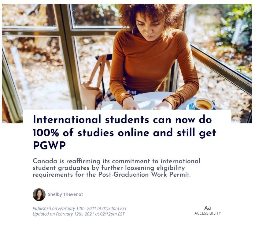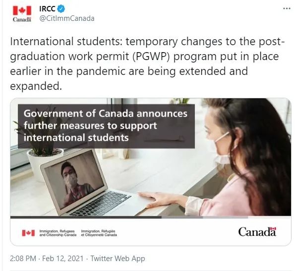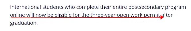 另外,加拿大移民局还宣布,即便国际留学生在进行100%纯网课后,仍然可以获得毕业工签(PGWP),完全不会耽误PR的申请!