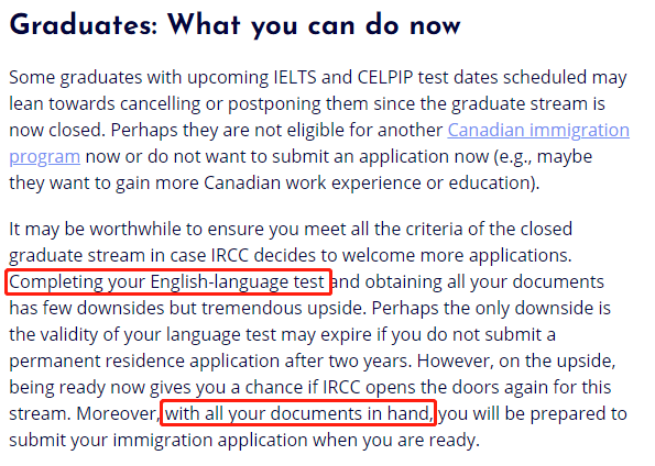 但是,CIC提醒,因为移民部随时可能再次开放申请通道,留学生应该尽早获得语言证明,以成功递交申请。
