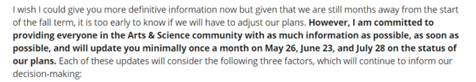 但是情况总是在变化,校方承诺尽量每月公布一次最新决议。5月26日,6月23日,7月28日再次更新。