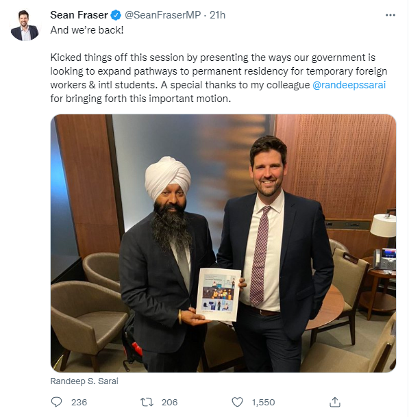 Sean Fraser在昨天的议会上还提供了一项最新战略,其中包括5个“支柱方法”帮助临时居民成为加拿大永久居民。