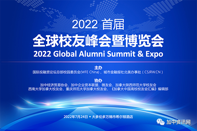 本次峰会暨博览会由国际投融资论坛总部校园委员会(WFEChina) 和城市金融报社北美办事处(CSJRW.CN)联合主办,北京中关村科技园区驻多伦多联络处参与联合主办科技、人工智能等部分论坛,协办单位包括加中经济贸易协会、加中企业资本联盟、加拿大陕西师范大学校友会、西南大学加拿大校友会、重庆师范大学加拿大校友会、《加拿大中国高校校友会汇编》编辑部和微友会。预计与会校友将由来自加拿大、美国、中国内地、英国、比利时、新西兰、新加坡及中国香港等国家和地区高校毕业的专家学者、金融家、投资家、企业家、科学家、艺术家、作家和参展商等各界校友代表参加。