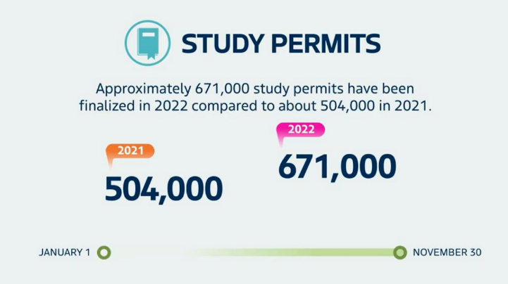 在学生许可的审理方面,加拿大今年有望创造一个新的记录。截至今年 11 月 30 日,IRCC 已经处理了超过 67 万份学生许可,相比之下去年同期则超过 50 万份。由于这些努力,大多数新的学生许可证现在都在 60 天的服务标准内得到处理。
