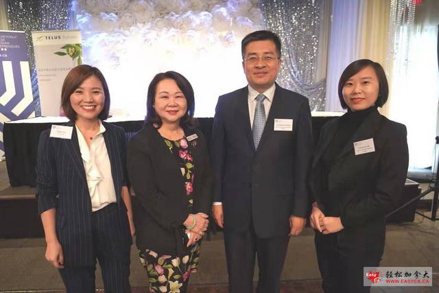 加中资讯网12月2日讯 由创业协进会举办, TELUS主题赞助之『ACCE企业家午餐会』日前在万锦市香格里拉宴会厅成功举行。交流会荣幸邀请到驻多伦多总领馆鄂德峰参赞及罗洁领事作特别嘉宾。并邀请到Bennett Jones资深顾问刘豫平女士,Hanson Canada总裁兼首席执行官马守义先生,龙源加拿大可再生能源有限公司总经理董铸先生为大家分享企业在加拿大投资的经验与教训分享。出席活动人数超过100人。