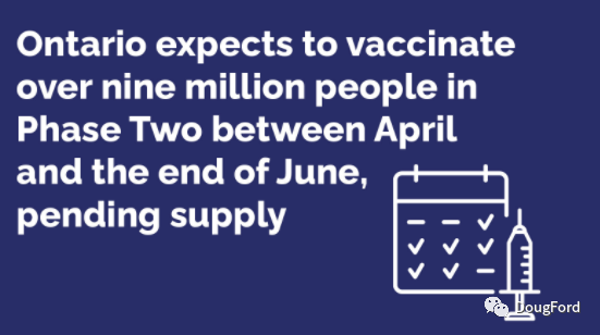 省府将根据年龄和感染风险,开展第二阶段计划,来避免死亡人数、住院人数及感染人数上升。为此,省府将为13个地区(如多伦多、皮尔区、约克区、杜林区、荷顿区)的重灾社区发放更多疫苗。省卫生厅正与各公共卫生局合作,利用一切现有渠道,如药店、大规模接种中心、移动接种小队,确保尽快为民众接种。省府支持上述地区当局根据邮政编码,为重灾社区年满50岁的民众施打疫苗。