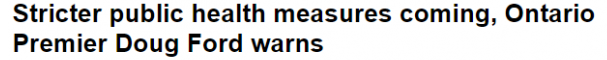 6日福特省长强调指出:“明天会讨论新的措施,但对于关闭餐馆非常遗憾,我不愿意这样做。但是我们会有进一步的限制,并且会专注于多伦多、皮尔区和约克区的疫情,这三个重灾区约占全省60%的确诊病例。”