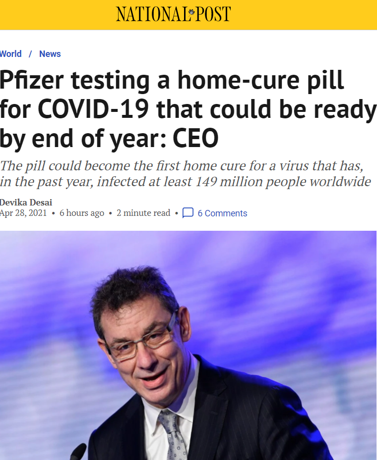 4月28日,辉瑞CEO Albert Bourla就带来这一希望:辉瑞正在研发的新冠口服药,有望年底上市!