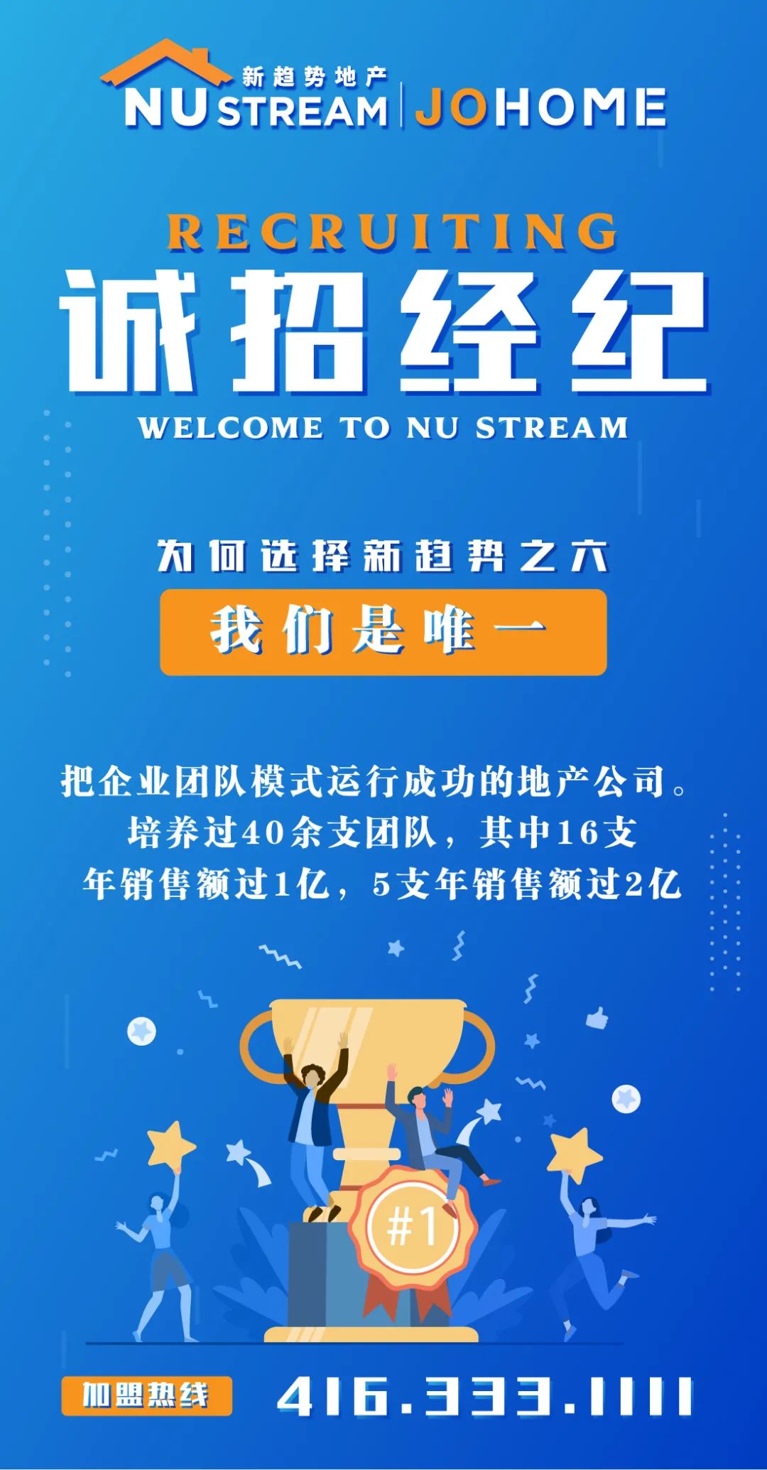 作为一家不断创新、锐意进取的新型地产经纪公司,新趋势是有App独立研发能力的华人地产公司,旗下Johome被腾讯评委流量最大的海外地产平台,累计客户超过700万人。公司自成立以来,在短短5年内已培养过40余支团队,其中16支年销售额过1亿,5支年销售额过2亿,今年甚至出现了销售额过5亿和6亿团队。