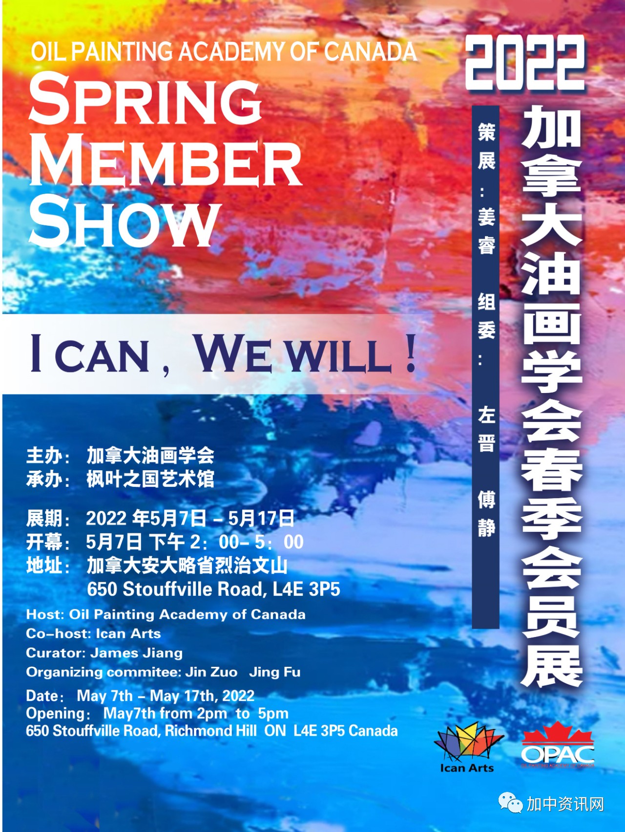 由加拿大油画学会(OPAC)主办,枫叶之国美术馆(Ican Arts)承办,加拿大国际艺术基金会支持的“加拿大油画学会会员绘画作品大展”将于2022年5月7日至22日盛大开幕。