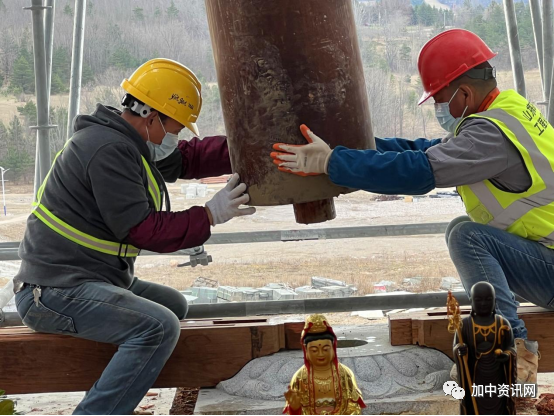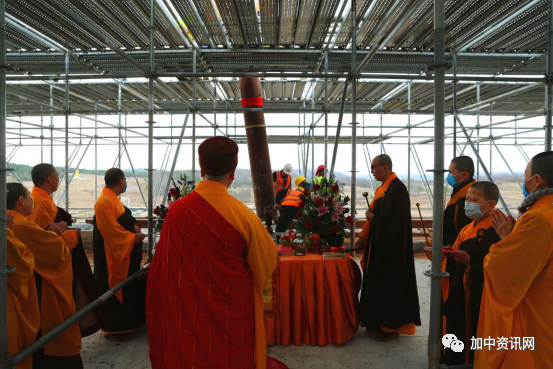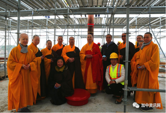 这是一个值得感恩的喜庆日子,原本天气预报说从上午8点开始要下一整天的雨,可是当达义大和尚率领众位法师到达现场,天就逐渐放晴,上午十点金柱正式起吊,十点零八分落柱,大和尚带领法师们开始洒净仪式,在洒净回向时,金柱稳稳落下。此时天气晴朗,清风徐徐,正是龙天护法护佑,诸佛菩萨法语清风吹沐身心!