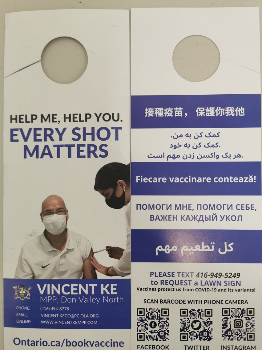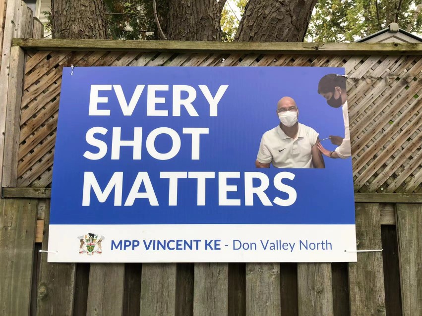 针对我们选区的疫苗接种率偏低的情况,我们还做了”Every Shot Matters”, 这样一个疫苗的宣传工作, 通过在社区插牌子进行宣传, 也取得了非常积极的效果。