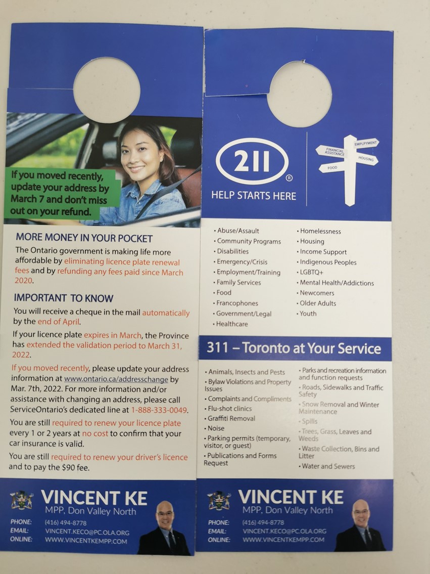Don Valley North是一个第一代移民占比70%的选区, 有不少选民对媒体关注度不够,把和大家生活息息相关的信息传递到他们家里是我们团队服务的一个重要工作。