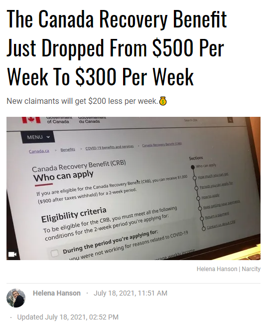 自去年疫情开始以来,加拿大政府就为许多失业居民开始发放救济金,每周$500加币,一个月就是$2000加币,在疯狂撒钱18个月后,政府终于也开始减缓了发钱的节奏。