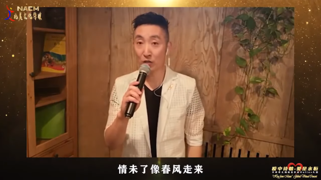 期间,加拿大湖北商会会长陆跃峰给银屏前的观众们带来问候,他们一直在境内境外为着疫情的捐助奔忙。他赞扬此次全球首场的“疫中诗情-爱是永恒”全球诗文诵读音乐会鼓舞了大家的斗志。