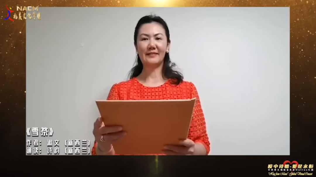 新西兰的诗韵带来的朗读诗人淑文的诗《雪祭》,娴静淡雅,有雪之晶莹和雪之洁净。