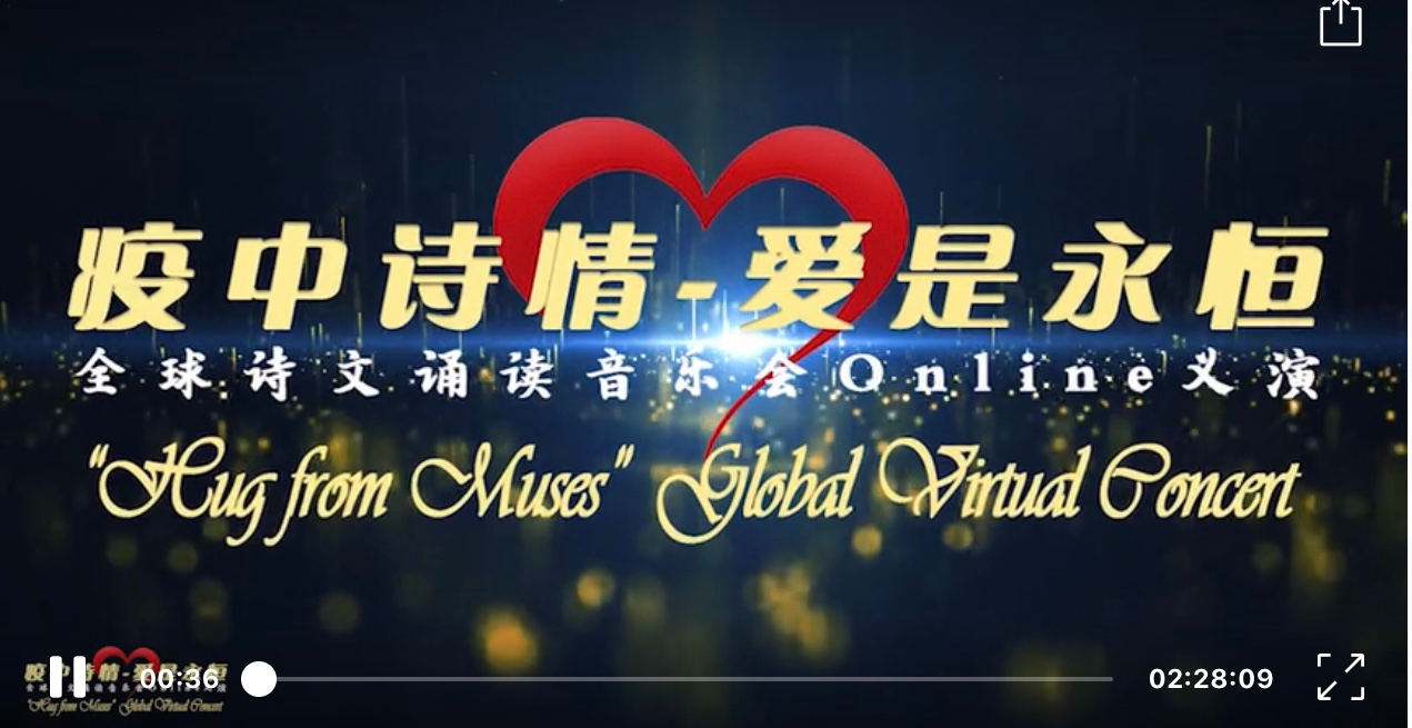 2020年的夏季,紧接着春天的脚步如约而来,数月来被疫情困绕的人们,精诚团结,同行协力。有形的空间可以被切割,无形的关爱却永远都在被传递。“疫中诗情·爱是永恒”全球诗文诵读音乐会Online义演 ,为着我们时空紧连的大爱,向全球,献上一份深沉的情怀。