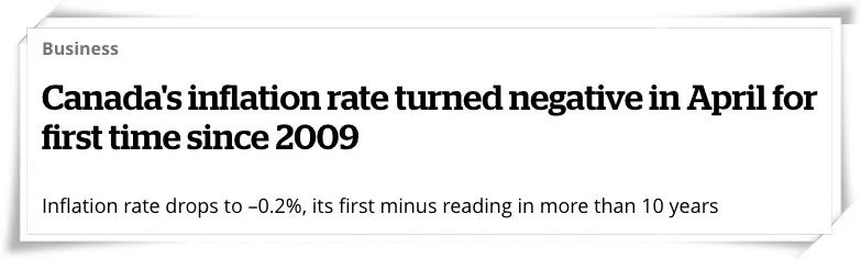 据CBC News的消息,加拿大统计局(Statistics Canada)昨日公布了4月份的全国通货膨胀的相关情况。数据显示,由于COVID-19流行的原因,上月加拿大几乎所有的商品价格都比去年低了很多,自2009年9月以来,加拿大的年通胀率首次降至负值为-0.2%。