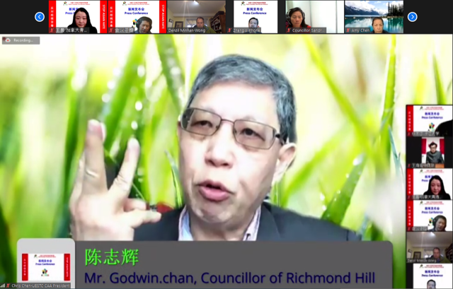在当天的新闻发布会上,加拿大联邦参议员胡子修、联邦国会议员蔡报国、安省教育厅长Stephen Lecce、安省议员柯文彬、韦邱佩芳、白必勤、Logan Kanapathi、多伦多市副市长黄闵南、多伦多市议员封赖桂霞、万锦市地区议员李国贤、万锦市议员何胡景、杨绮清、列治文山议员陈志辉、旺市议员杨士婷,以及联盟发起单位多伦多华人团体联合总会、全加华人联会(安大略区)、加拿大华人同乡会联合总会、加拿大中国专业人士协会、加拿大中国商会团体联盟、加中地产投资总商会、加拿大中国高校校友会联合会、加拿大深圳社团联合总会、加拿大加中校友商业联盟、现任中国高校校友会会长群(加拿大)、加中经贸文化交流协会、多伦多华裔媒体工作者协会、加拿大华人文化艺术团体联谊会等13家联盟发起单位代表、社区知名人士分别发言,他们从历史、文化、社区、行业、团体发展等各个角度分析了种族歧视的由来与现状,并针对性的提出了意见和建议,和对联盟下一步工作的期望。