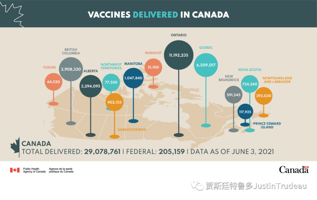 我们仍将继续努力工作,确保疫苗的不断发送,直到每个人都能打上疫苗。目前,在G20国家中,加拿大至少打完一针疫苗的人口比例已成最高。这正是我们想要争取的位置——因为接种疫苗的人越多,我们就越安全,我们离度过这场危机的终点就越近。