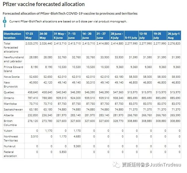 接种疫苗的最新通报:我现在可以确认,直到 8 月底,加拿大每周将收到超过 200 万剂辉瑞 (Pfizer) 的 COVID-19 疫苗。