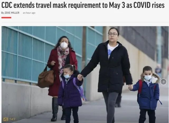 拜登政府周三宣布,全美范围内公共交通的口罩要求延长 15 天,美国疾病控制和预防中心CDC表示,延长原定于 4 月 18 日到期的命令,直到 5 月 3 日。
