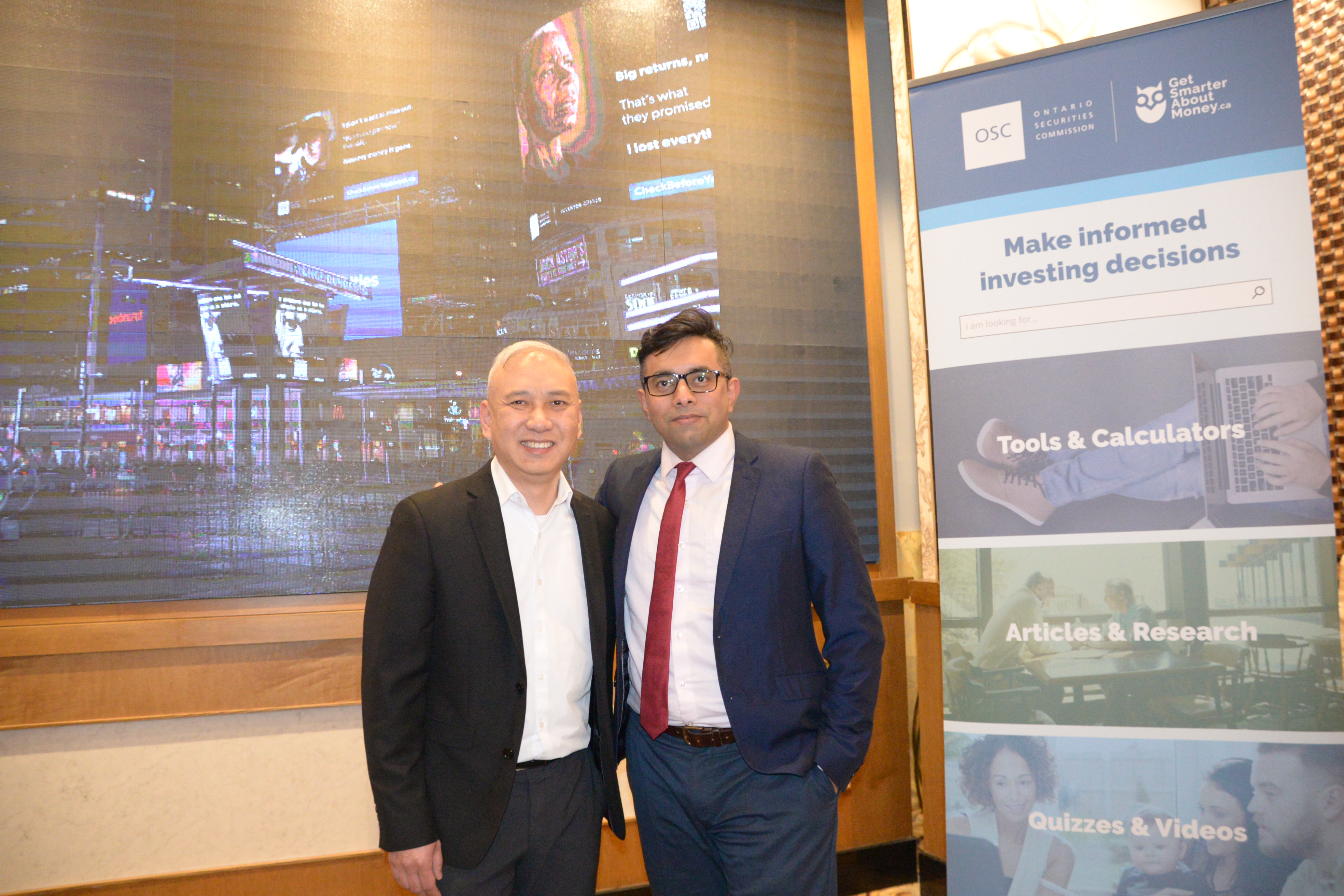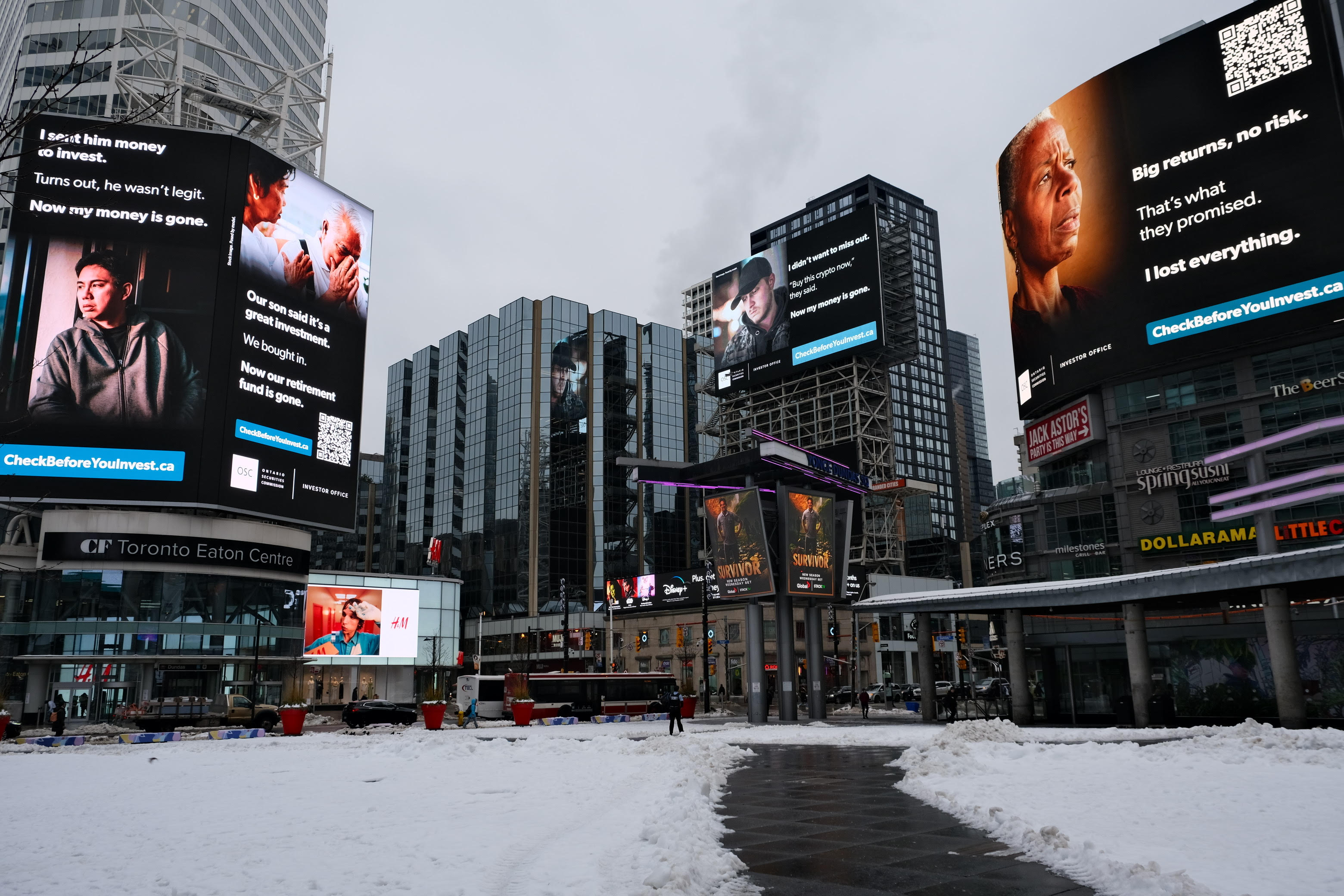 - 在多倫多市中心央-登打士廣場大型熒幕展示防詐騙警告
