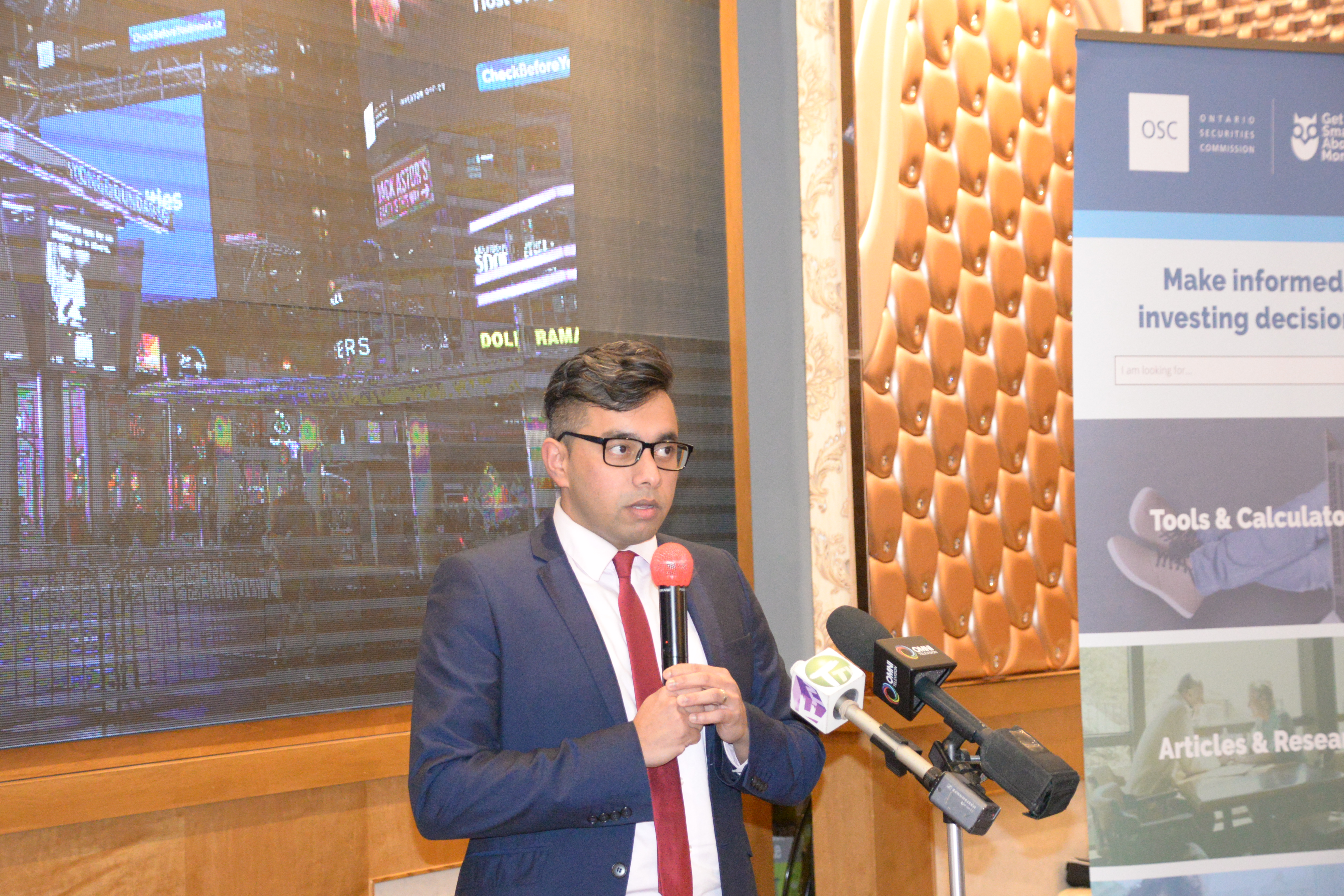 加中资讯网2023年3月24日讯 安省證券委員會(Ontario Securities Commission)於3月22日,在萬錦市舉行「加拿大防詐騙月」講座,由證委會代表Raj Balasubramanian介绍如何識別和防止詐騙陷阱,以及提供投資方式的資訊,保障省民資金安全。