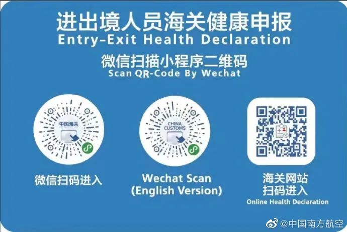 同时,入境中国需要填写海关健康申报小程序。需用微信扫描(中英文两个版本,扫一个即可)。