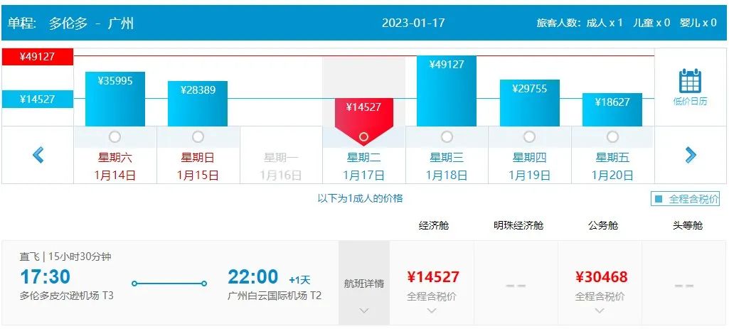 近日,根据中国南方航空的机票预订系统显示,自2023年1月起,新增了一趟广州直飞往返多伦多的航班。这意味着计划买机票回国的华人们又多了一个选择。