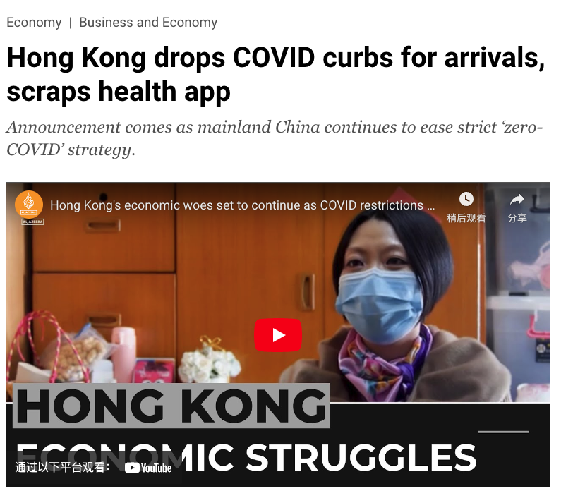 最新的调整意味着香港基本上采取了“0+0”,入境人士只要抵达时检测结果为阴性,就可以免除隔离,自由出入了。