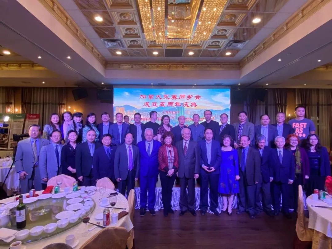 联邦国会议员叶嘉丽丶市议员封赖桂霞丶Lsa Li丶Amanda Yeung丶Sandra Yeung Racco的先生丶地产投资会会长孙志峰丶洪门余卓文丶越南棉寮陈福丶加拿大华商联合会执行主席蒋志成丶促统会秘书长林中丶加中智库主席林性勇丶陈镜明教授等人纷纷发言致辞,祝贺永春同乡会成立五周年;参加晚会的嘉宾有北京协会会长杨宝凤丶四川同乡会会长刘熹丶河北协会会长张杰丶福建会长王清官丶湖南会长黄幸来丶上海会长沈谢元丶重庆会长刘丁绰丶宁夏会长张红丶江邦固律师丶RIFO总裁吉小硕丶徐州会长张俭丶上海协会谢征丶浙江总商会罗幼奋丶加中企业家联合会会长刘慧芸丶枫会会长余承璋丶顺德商会会长胡启北,云南总商会会长朱燕丶成都同乡会会长谭新雄,浙江同乡会会长丁君华,天津商会孙泽钰,中华青年联合会会长邵宜航,江苏国际商会沈浩,水寿忪等。