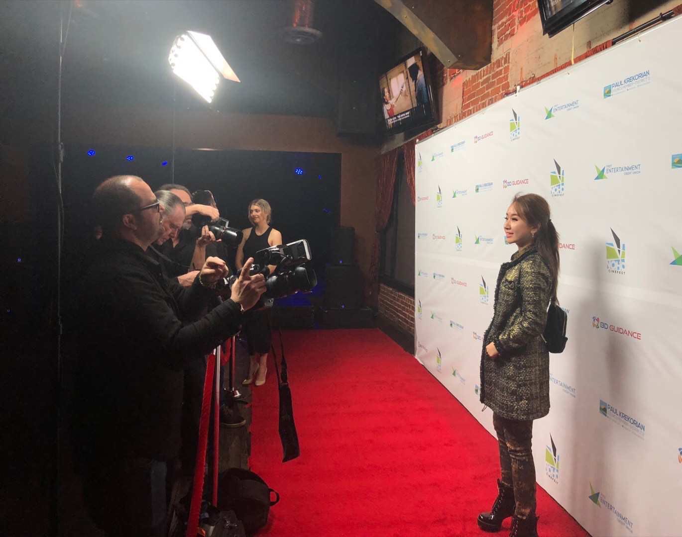 与(左一)好莱坞极光影业CEO叶英女士,(右一)好莱坞对话主持人Gia
