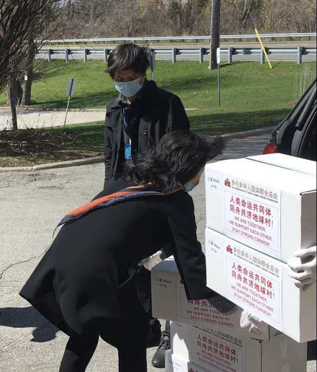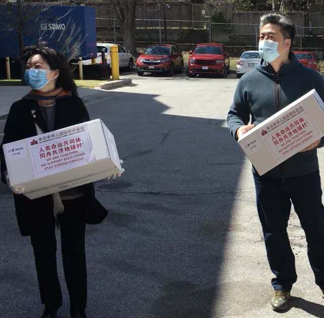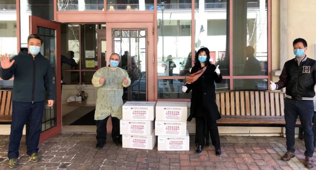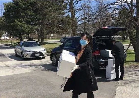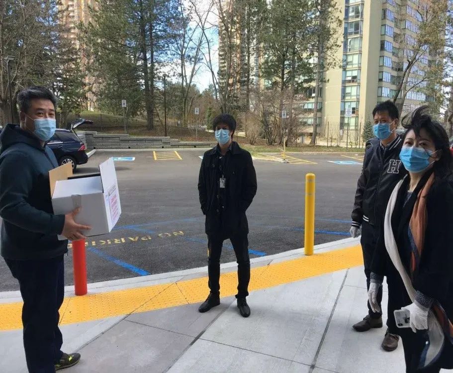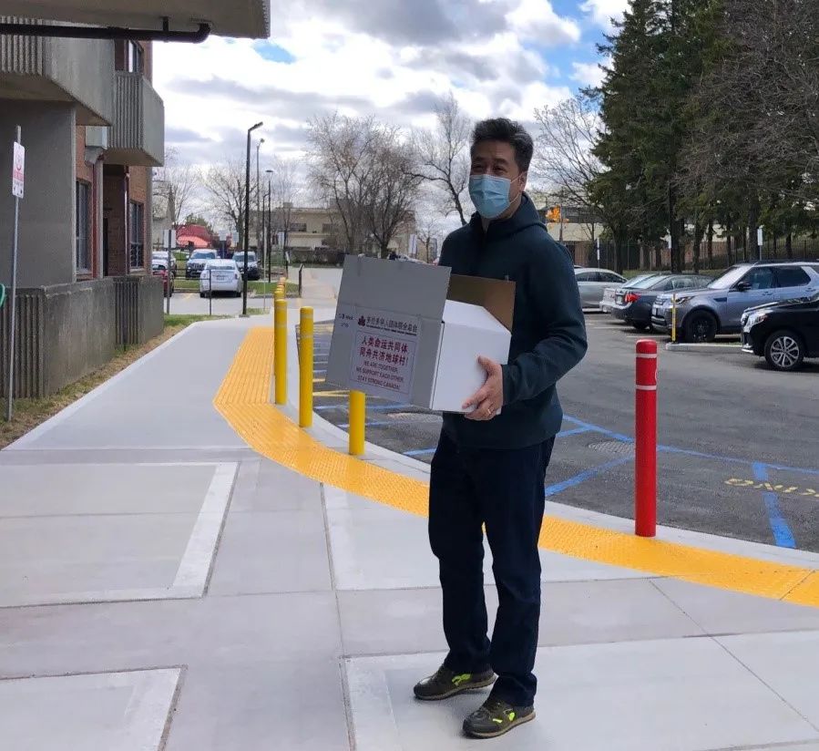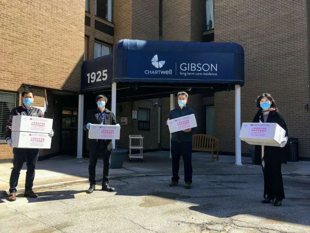 加中资讯网2020年4月11日讯,4月10日复活节前夕的GoodFriday, 多伦多华联总会一行在董晗鹏国会议员的联络安排和亲自带领下,来到五家老人院或长期护理中心捐赠医用口罩,这五家老人院分别是:AmicaBV, Amica Bayview Gardens,Chartwell Gibson LTC,Yee Hong(颐康)等。这些接受捐赠的老人院或护理中心都非常感谢华联总会的捐赠,表示老人们和照顾老人的工作人员们都非常需要这些防护物资。