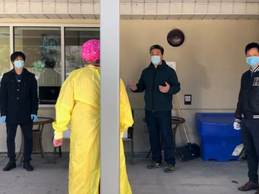 董议员在来到每一间养老院或护理中心时,都是一马当先带头把物资亲手送到入口处。面对养老院的交接人员,虽然保持2米的社交距离,也挡不住董议员眼中的关切。董议员后来在电话里说,这些养老院他在竞选国会议员时都走访过,因此对于护理人员面对的压力,感同身受。在捐赠行动完成后的电话里,董议员和华联总会同行人员分享感受时说,在今天传递捐赠物资时,看到身着黄色隔离衣的护理人员走出来,再想到在她们背后的老人院里就有病毒感染的老人,短暂的站在门口,进入第一道大门,咱们已经能够感受到那种压力扑面而来,何况护理人员要天天身处其中,每天面对感染的风险来照顾老人们,真的对他们和他们的家人是极大的压力和挑战,他们真的需要全社会的支持!