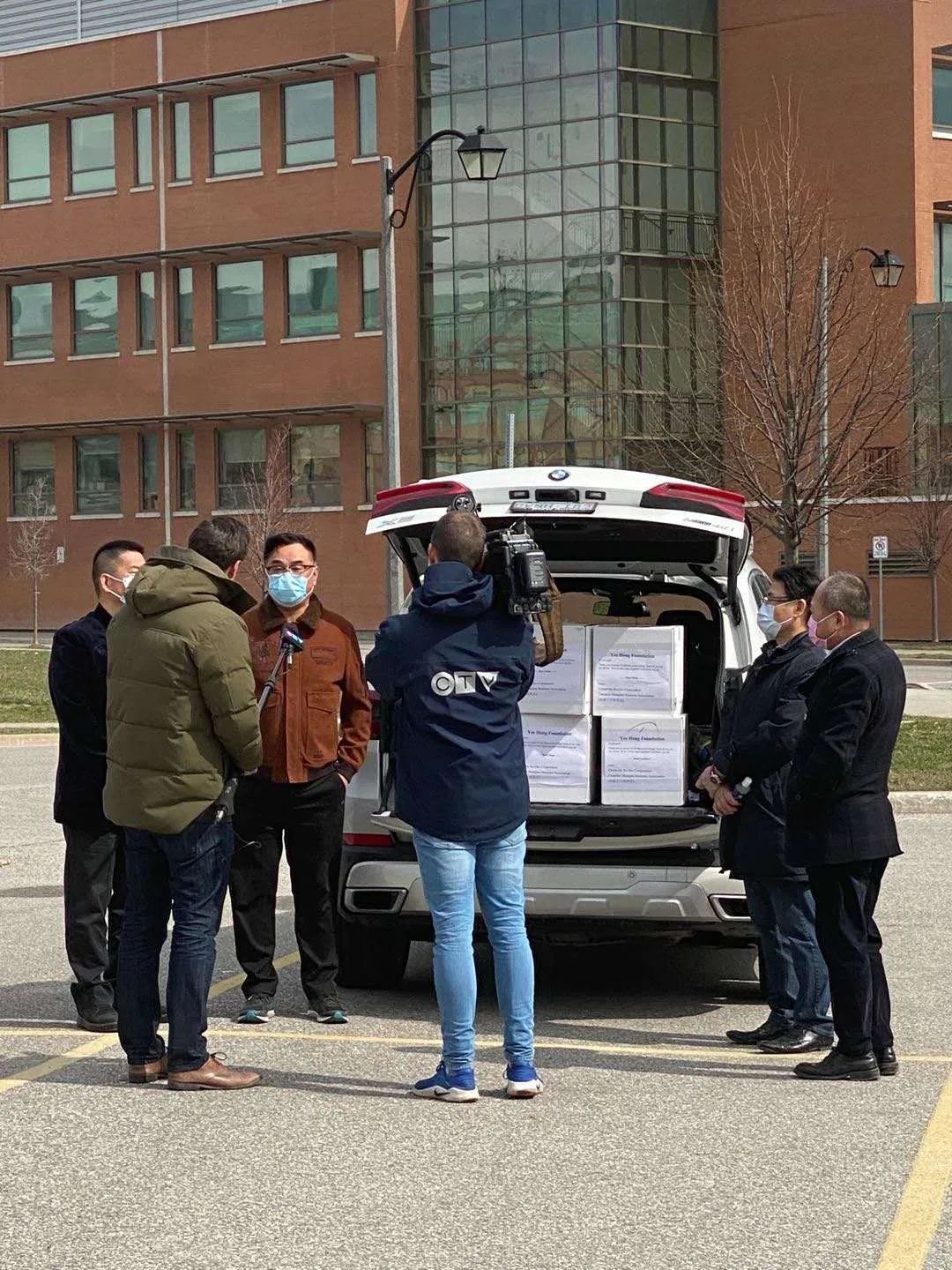捐赠当天加拿大主流电视台CTV得知他们的善举安排采访了加拿大上海商会。