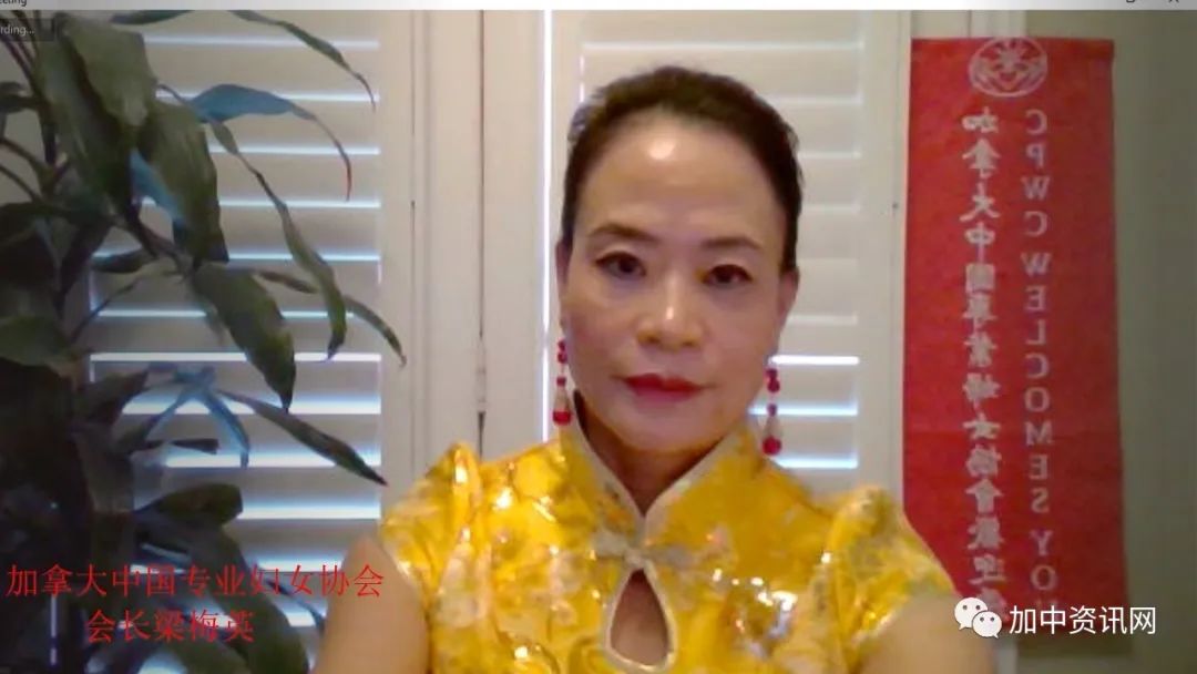 会长梁梅英致辞:“自疫情发生以来,妇女协会积极组织会员捐款、捐物、支援加中两国抗疫。除此之外,协会还帮助隔离期间的会员购买食品;帮助需要帮助的病患者及时联系医生等等……。由于疫情,政府关闭了所有的社区活动中心,直接影响了会员们长期坚持的健康活动项目,协会又在第一时间联系了多伦多太极大师杜云峰师傅开展线上太极教学(到目前为止已经有包括来自中国、英国的学员300多人);同时为喜欢唱歌的会员们组织了线上歌唱学习、愉悦身心;协会还组织线上健康讲座等等,鼓励大家积极健身,用积极向上的心态抗击疫情”。