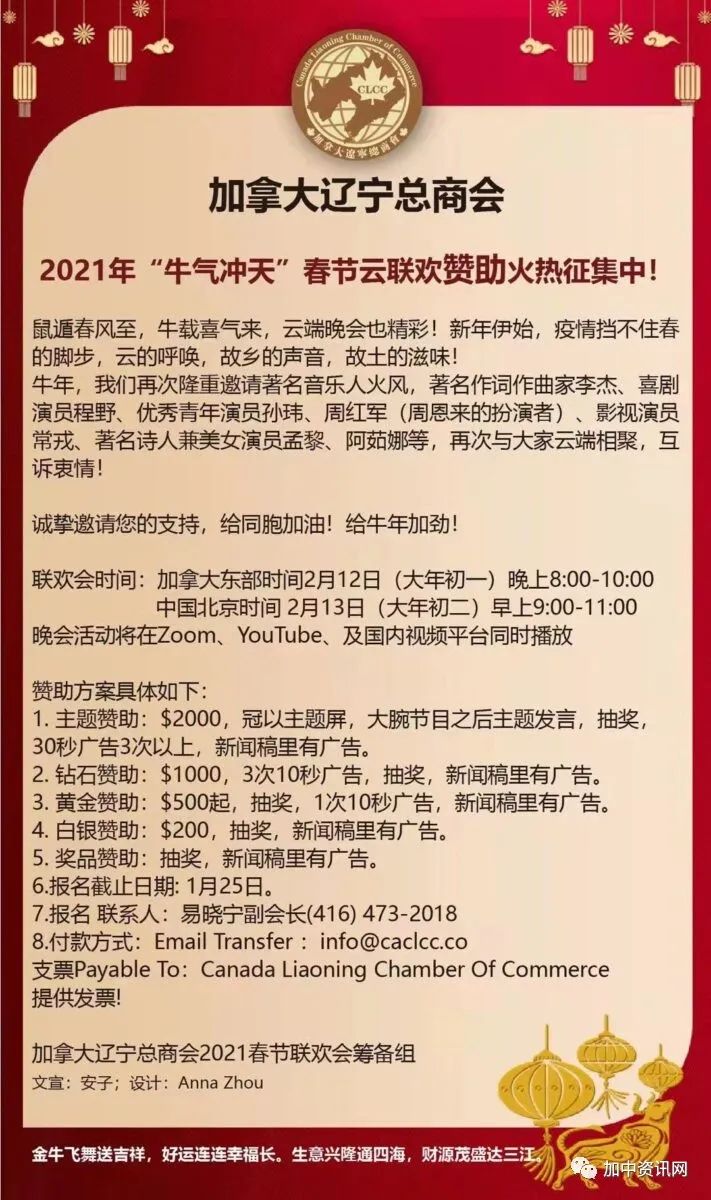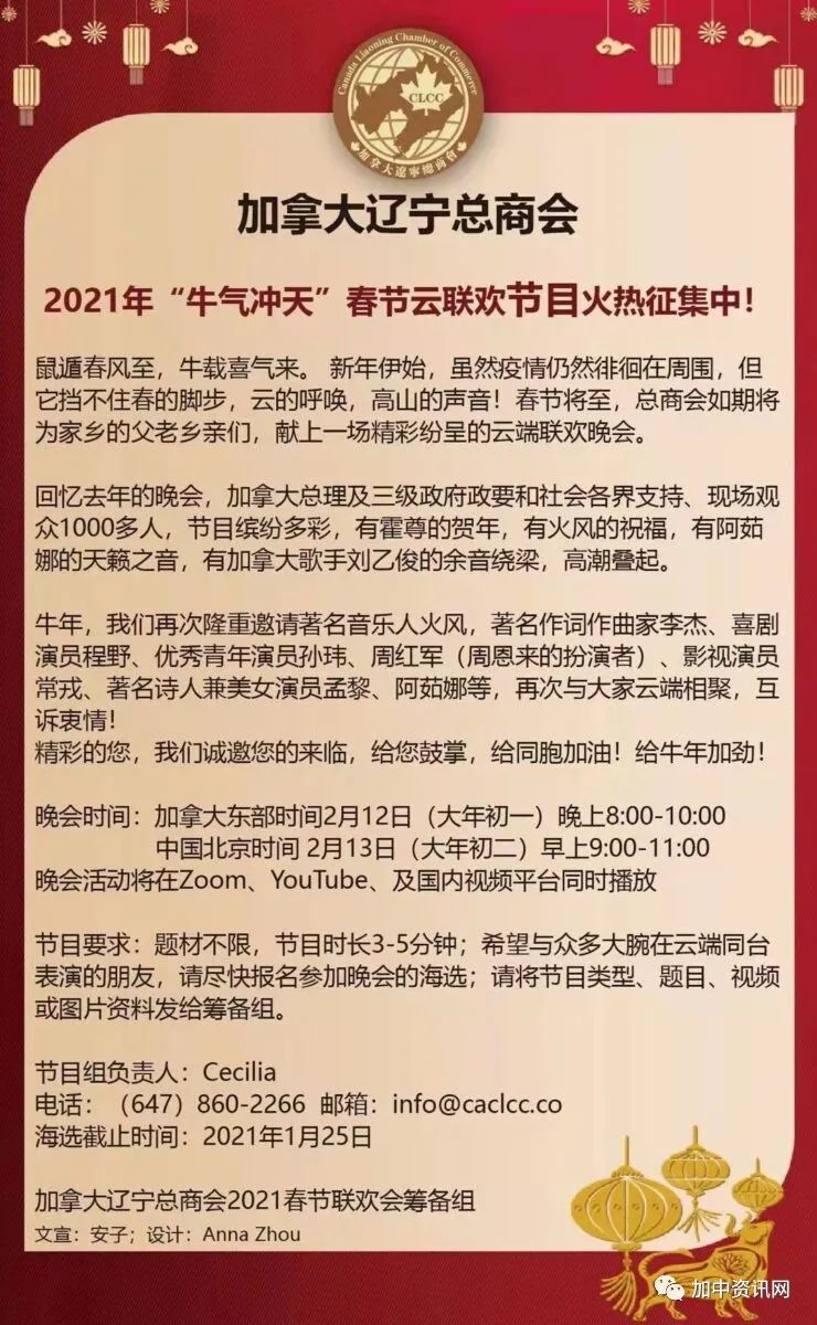 加拿大东部时间2月12日(大年初一)晚上8:00-10:00