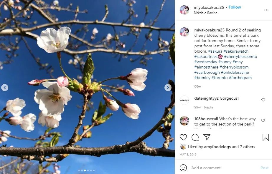 这个位于士嘉堡的小众公园,每逢春天路边都会开着娇艳的樱花。想象一下,漫步在粉红色的樱花树下,真的是一件非常惬意的事情!