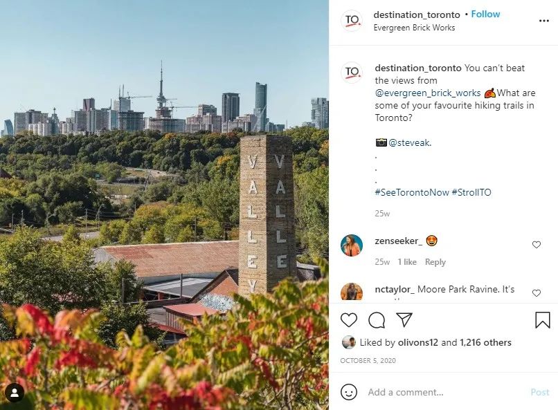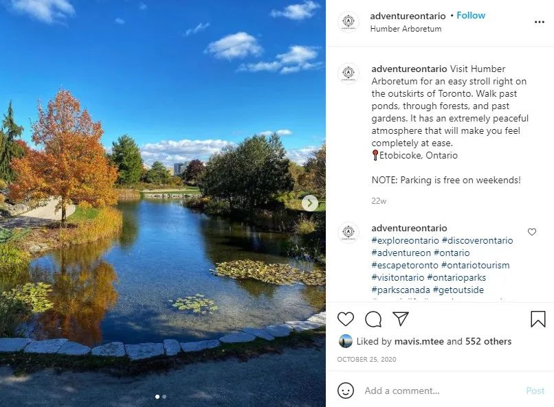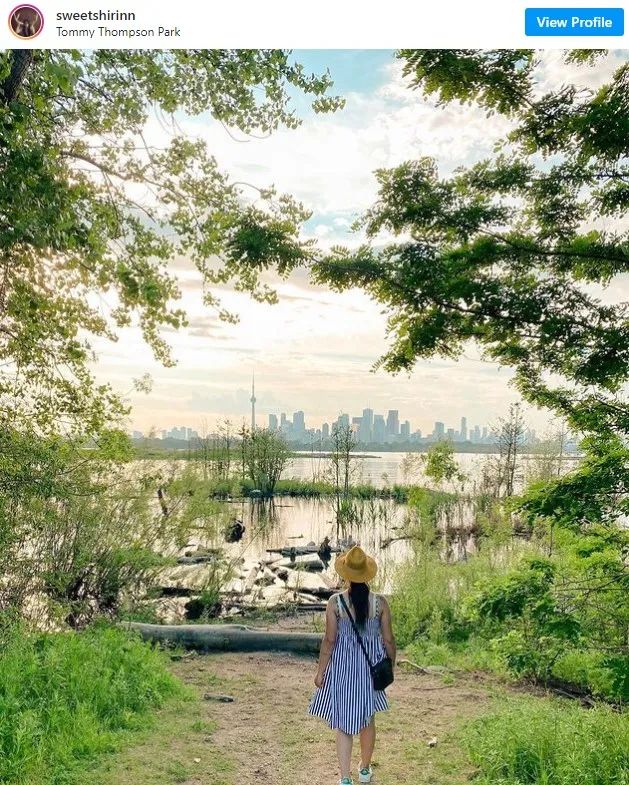 这里不仅拥有郁郁葱葱的密林,还有池塘和花园,一片春意盎然的美景。不仅如此,这里还能远眺多伦多CN Tower,无论是踏春还是拍照都非常合适~