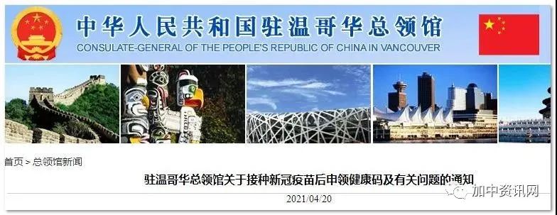 4月20日,驻温哥华总领馆也发布了最新通知,就接种疫苗后如何回国作了详细说明。下面是通知全文: