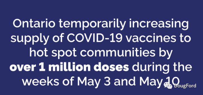 安省政府预计联邦疫苗供应将有所增加,因此决定向高危区域发放更多疫苗。省府已根据邮政编码,划分诸多重灾社区,并将向上述区域精准发放50%疫苗,以降低传染率和住院率。