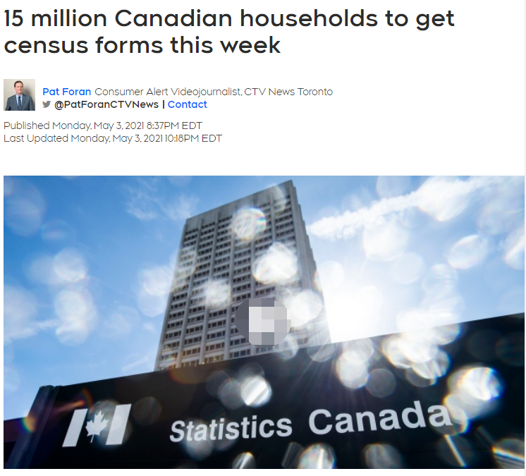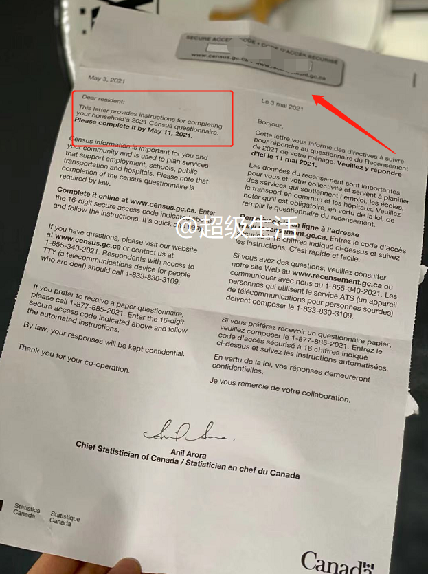 昨天5月3日,加拿大统计局(Statistics Canada)寄出的这封信如期而至。很多华人已经收到了这封信。