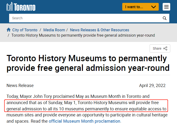 好消息!5月起,多伦多10个博物馆全部取消门票免费参观!
