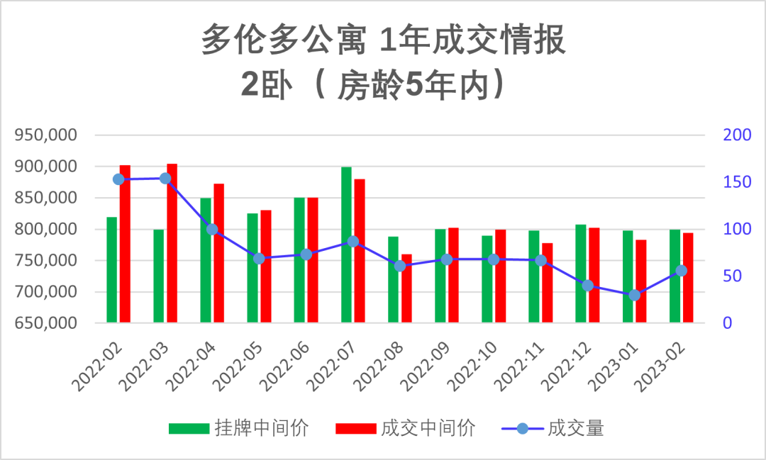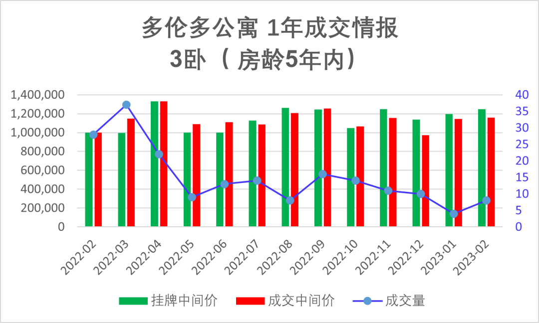 总体来看:华人喜居地,成交量明显上升(2月还比1月少3天哦),可见需求。随着市场的活跃,价格呈上涨趋势。