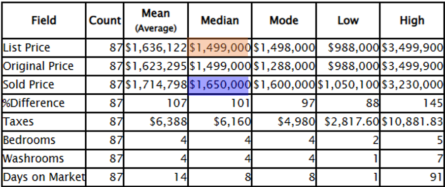 独立屋,成交87套: 中间成交价165万,高出要价15万