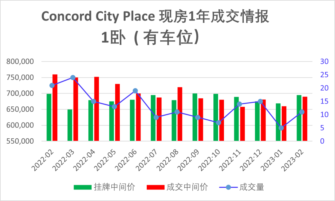 02 1卧(有车位):成交11套,中间成交价69万,低于要价1万