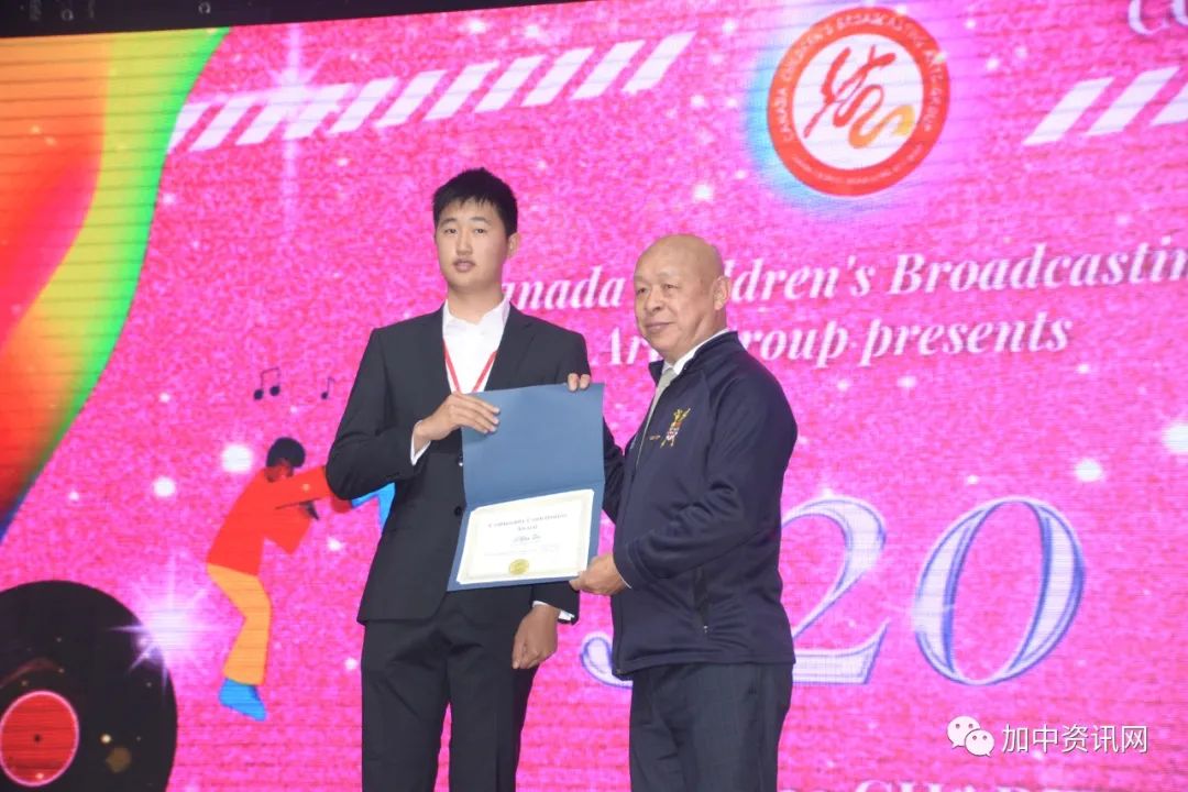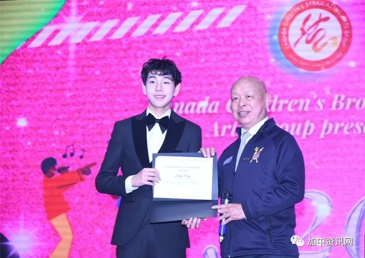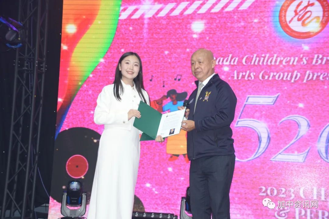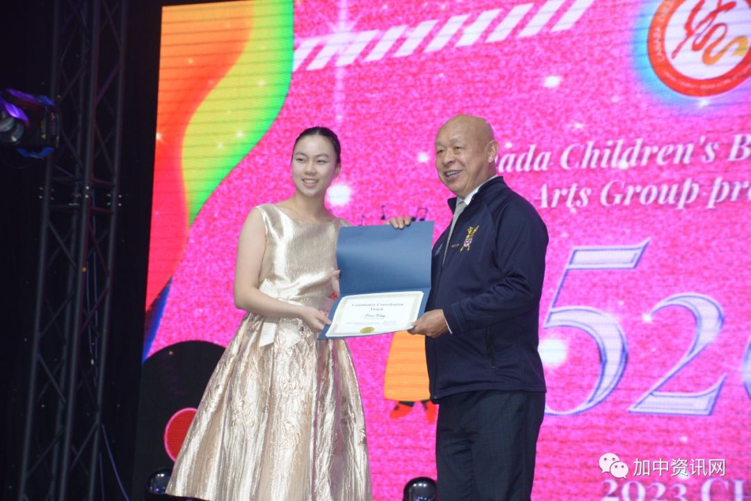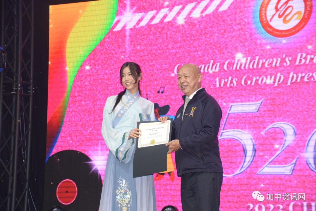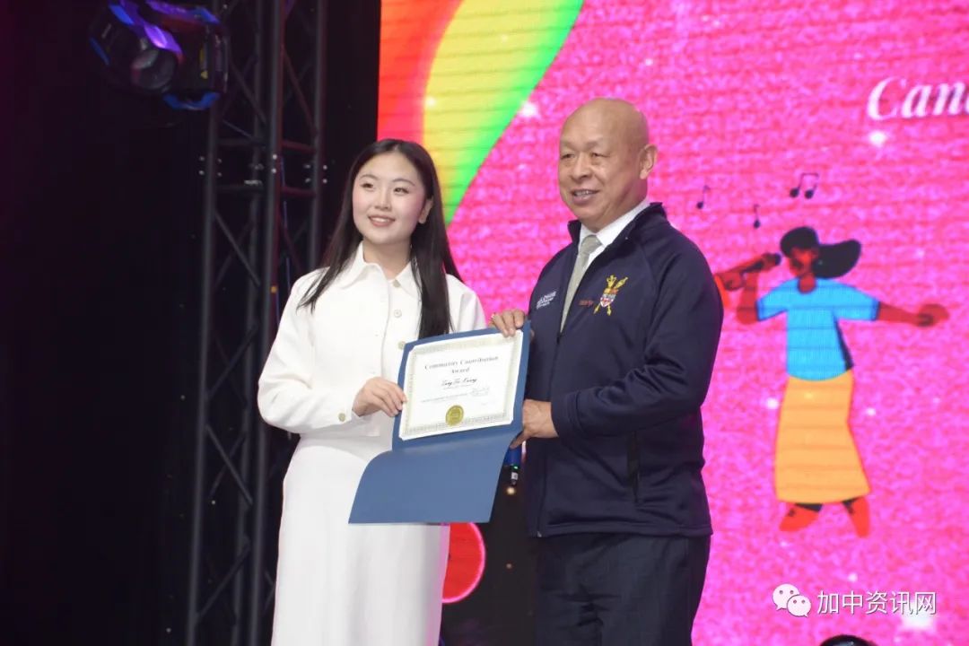 加拿大联邦国会议员蒋振宇(Paul Chiang)宣读加拿大总理贾斯汀·特鲁多为活动发来的贺信并致辞,随后给加拿大儿童艺术团的义工颁发了社区贡献奖。