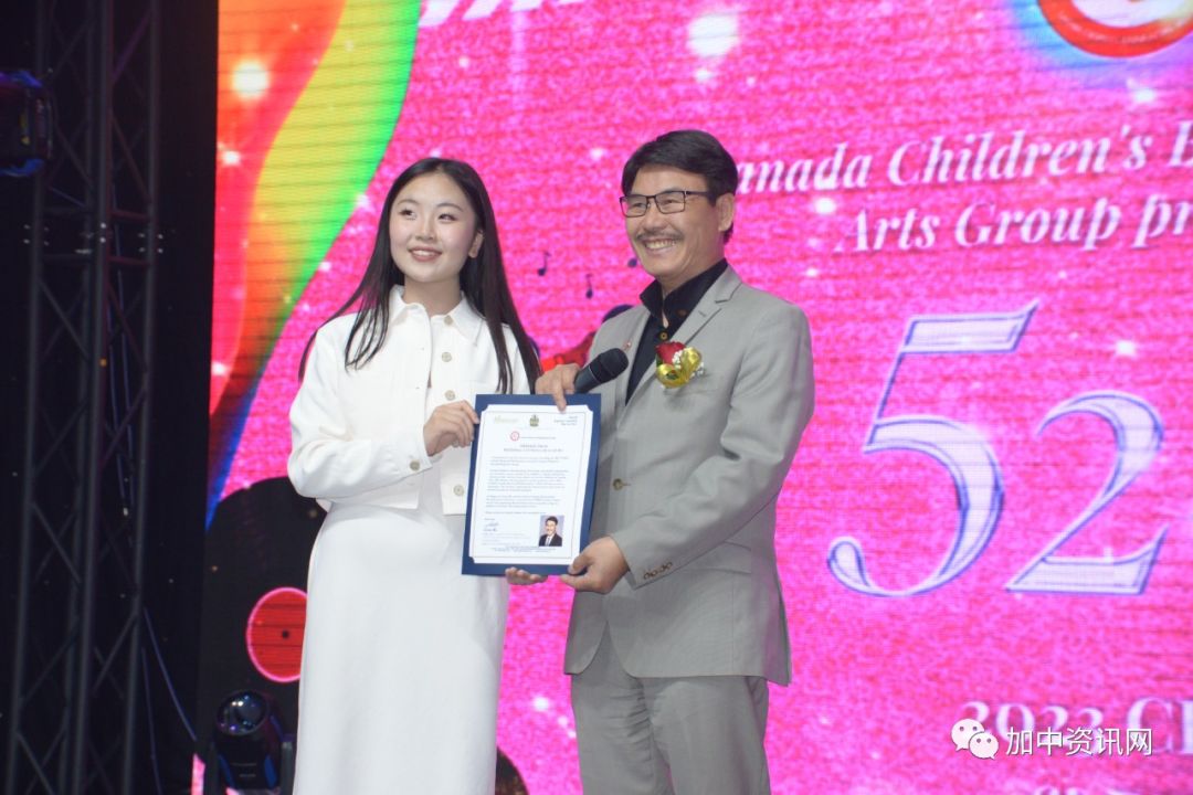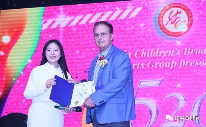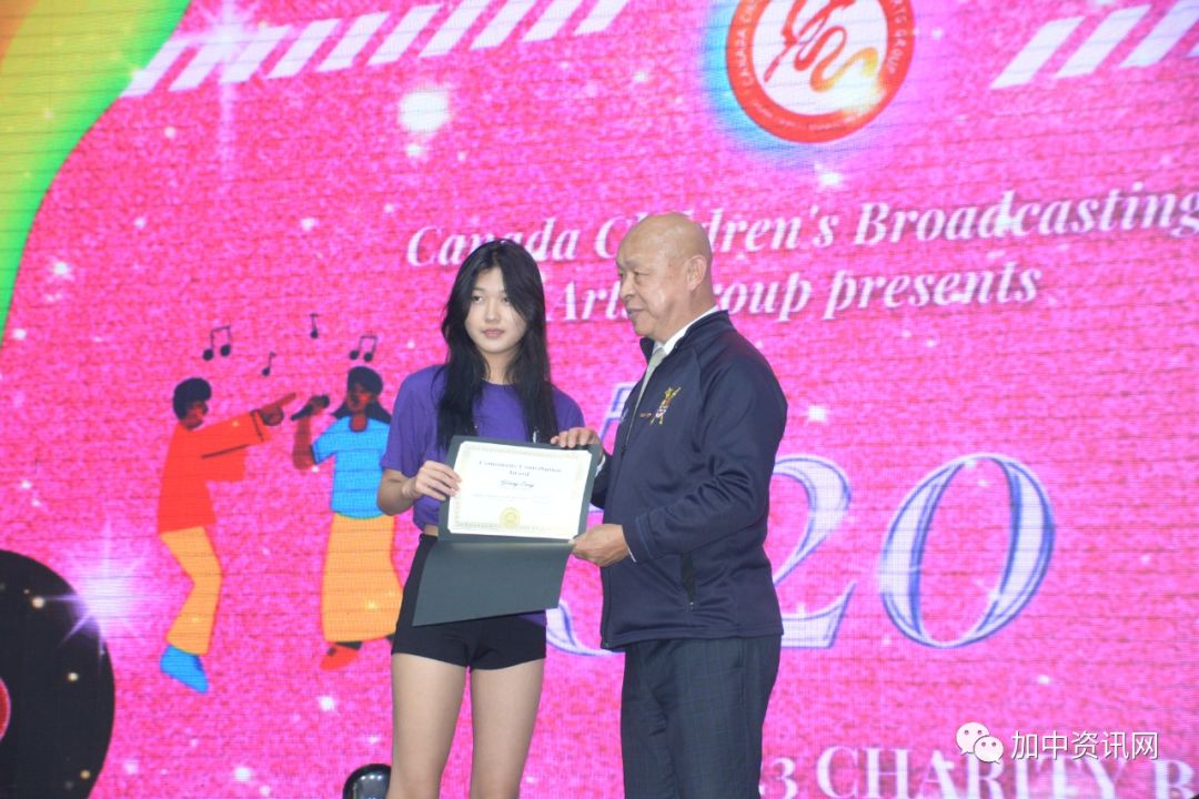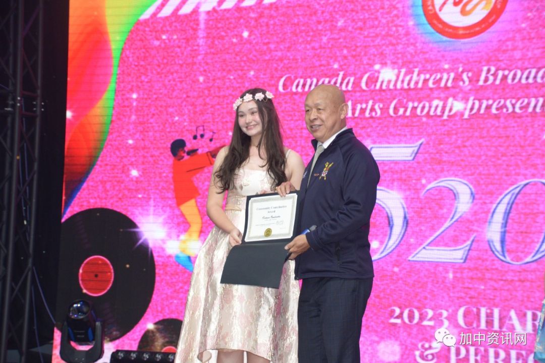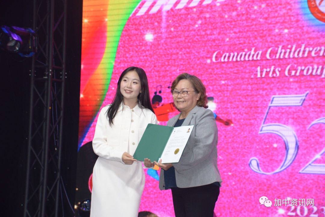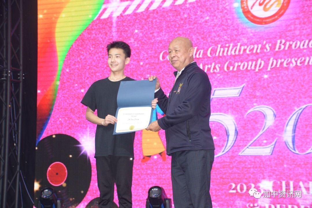 加拿大联邦国会议员蒋振宇(Paul Chiang)宣读加拿大总理贾斯汀·特鲁多为活动发来的贺信并致辞,随后给加拿大儿童艺术团的义工颁发了社区贡献奖。