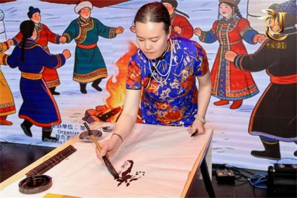 大九州艺术中心Summer 等演员带来古风歌舞《我的新衣&成双》,协会理事魏榛表演蒙古顶碗舞与筷子舞,技艺精湛,赢得阵阵掌声,观众看的如痴如醉。